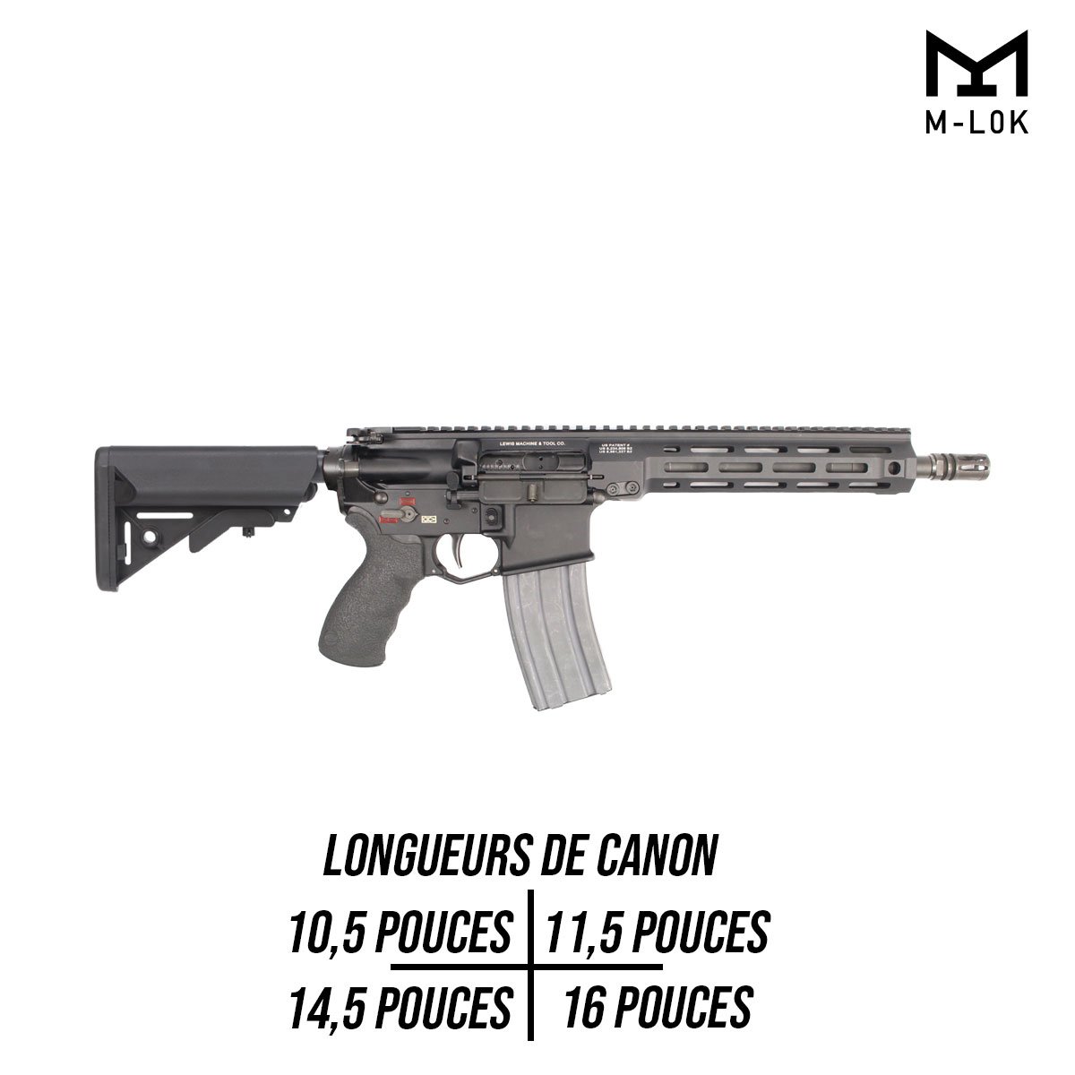 La carabine MRP ambidextre est construit sur la plateforme monolithique brevetée par LMT®. La seule véritable plate-forme monolithique, fabriquée à partir d’une seule pièce d’aluminium aéronautique. Elle utilise deux écrous de verrouillage accessible sur le côté droit du upper pour verrouiller le canon. Cette technologie brevetée rend le canon amovible en quelques secondes. Un upper peut utiliser de nombreux canons de différentes longueurs et calibres de la gamme MRP®. Le MRP est équipé d’une garde main M-LOK. Les canons LMT® utilisent un bloc de gaz à profil bas et un tube à gaz droit. Ils possèdent un revêtement exclusif et sont traités par cryogénie pour une meilleur durabilité (environ 20000 coups). Le lower MARS est totalement ambidextre, il est composé d’une poignée texturée ergonomique LMT® et une crosse SOPMOD, tandis que les fonctions ambidextres sont assurées avec un verrou de culasse, un poussoir de chargeur et un sélecteur de tir. Comme avec tous les lower LMT®, le tube de rallonge est enduit d'un lubrifiant à film sec. Il est livré avec un chargeur et un manuel de l’utilisateur.