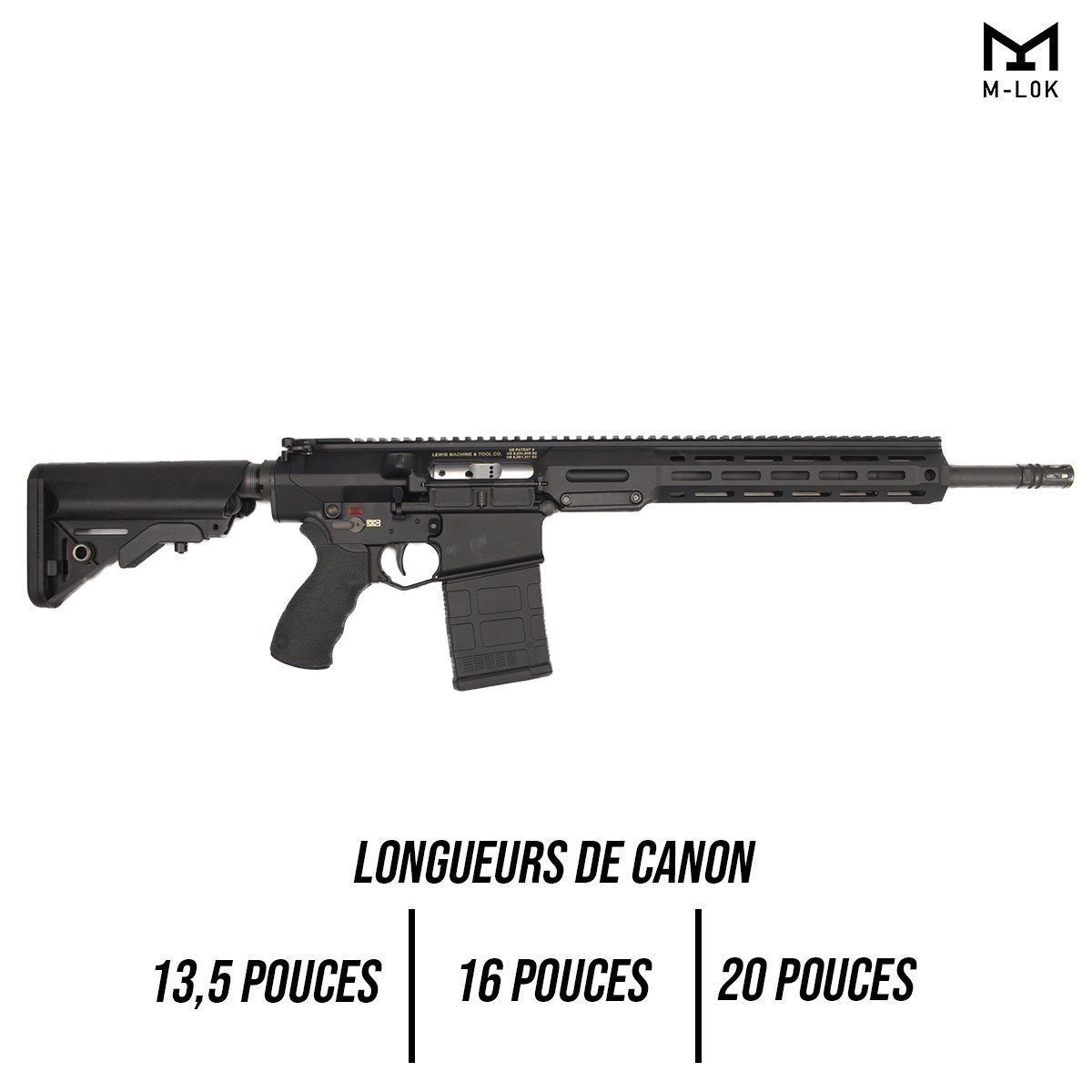 Le fusil MWS en calibre .308 est un système d'armes modulaire monolithique breveté par LMT®. Le MWS est la seule véritable plate-forme monolithique, fabriquée à partir d’une seule pièce forgée en aluminium aéronautique. Il utilise deux vis de verrouillage accessibles du côté de la garde main pour verrouiller l’extension du canon. Cette technologie brevetée rend le canon amovible en quelques secondes avec un retour à zéro (même canon). Le upper peut recevoir d’autres canon, de longueurs et calibres différentes. Les canons MWS utilisent un bloc de gaz à profil bas et un tube de gaz droit. Ils possèdent un revêtement exclusif et sont traités par cryogénie pour une durabilité à long terme. Le lower du MWS est doté d'une poignée texturée ergonomique LMT®, d'une crosse SOPMOD, d'un verrou de chargeur et d'un sélecteur de tir complètement ambidextre. Le lower MARS est totalement ambidextre, il est composé d’une poignée texturée ergonomique LMT® et une crosse SOPMOD, tandis que les fonctions ambidextres sont assurées avec un verrou de culasse, un poussoir de chargeur et un sélecteur de tir. Comme avec tous les lower LMT®, le tube de rallonge est enduit d'un lubrifiant à film sec. Il est livré avec un chargeur et un manuel de l’utilisateur.