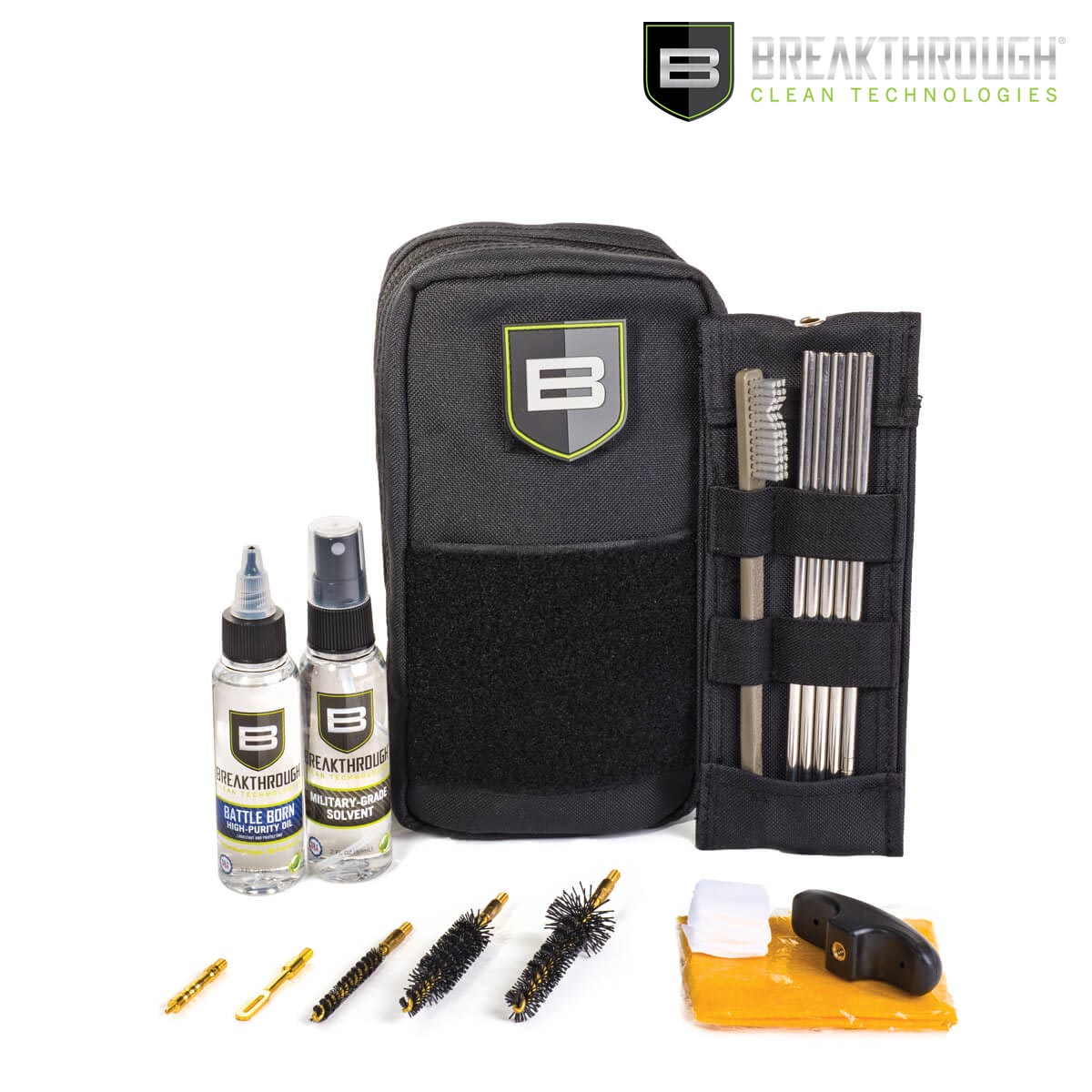 Kit de nettoyage complet pour arme longue comprenant une poche molle, les accessoires et les produits indispensables pour entretenir les fusils .223 cal./5.56 mm. Les produits de nettoyage Breakthrough® Clean sont à la pointe de la technologie et permettent un nettoyage plus rapide et plus sûr de vos armes à feu. Ils éliminent plus de contaminants que la plupart des produits sur le marché, offrant des performances optimales, la sécurité et une facilité d'utilisation. Les lubrifiants offrent une protection parfaite, résistent très bien aux températures extrêmes et réduisent la fréquence d'application.