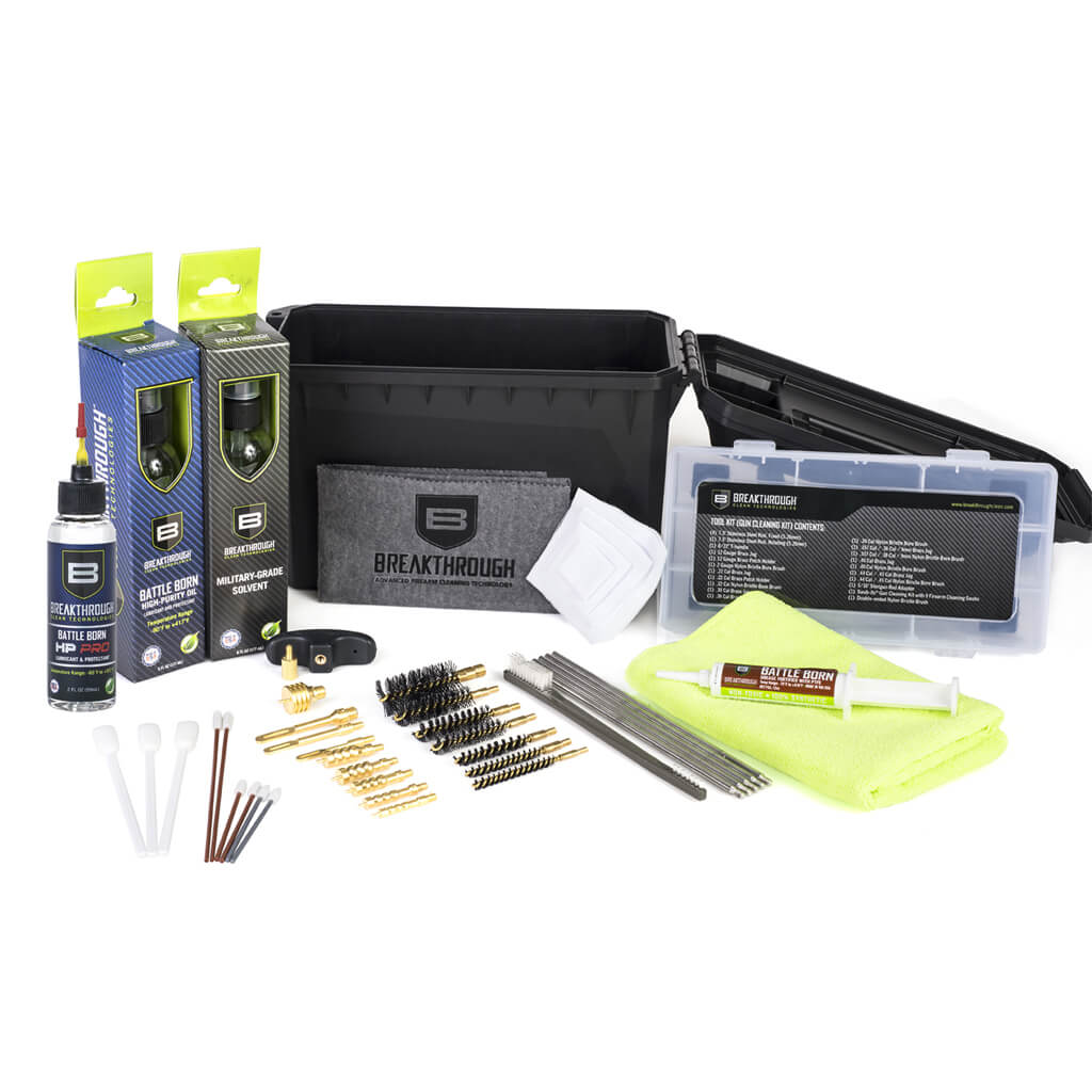 Ce kit complet de nettoyage Breakthrough® est la solution parfaite pour le tireur qui cherche la solution de nettoyage ultime. Vous posséderez à la fois tous les outils, et tous les produits pour nettoyer n'importe quelle arme du calibre .22LR au calibre .12G. Le tout contenu dans une boite en plastique type boite à munition. Facile à stocker, facile à ranger.