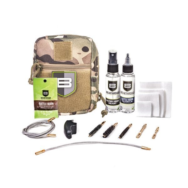 Kit de nettoyage militaire compact et complet pour 3 armes comprenant une poche molle, les accessoires et les produits indispensables pour entretenir les pistolets 9 mm, les fusils .223/5.56 mm et les cal. .30/7.62 mm. Les produits de nettoyage Breakthrough® Clean sont à la pointe de la technologie et permettent un nettoyage plus rapide et plus sûr de vos armes à feu. Ils éliminent plus de contaminants que la plupart des produits sur le marché, offrant des performances optimales, la sécurité et une facilité d'utilisation. Les lubrifiants offrent une protection parfaite, résistent très bien aux températures extrêmes et réduisent la fréquence d'application.