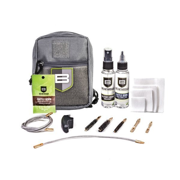 Kit de nettoyage militaire compact et complet pour 3 armes comprenant une poche molle, les accessoires et les produits indispensables pour entretenir les pistolets 9 mm, les fusils .223/5.56 mm et les cal. .30/7.62 mm. Les produits de nettoyage Breakthrough® Clean sont à la pointe de la technologie et permettent un nettoyage plus rapide et plus sûr de vos armes à feu. Ils éliminent plus de contaminants que la plupart des produits sur le marché, offrant des performances optimales, la sécurité et une facilité d'utilisation. Les lubrifiants offrent une protection parfaite, résistent très bien aux températures extrêmes et réduisent la fréquence d'application.