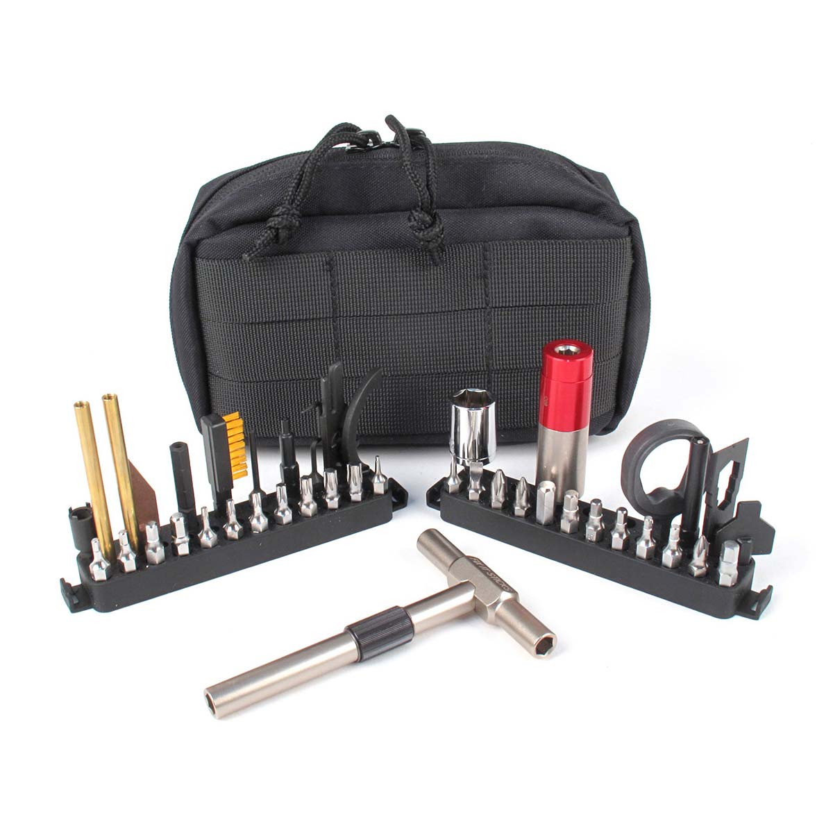 Le kit WORKS Tout En Un avec un embout dynamométrique est le kit de maintenance ultime pour les plateformes AR. Ce kit contient de nombreux embouts et des accessoires conçus pour vous aider à entretenir votre AR, à resserrer vos pièces d'optique et les vis de votre AR au couple correct, mais également sur les pistolets et les fusils. La mallette de transport souple est dotée d'un porte-embout moulé qui est conçu pour contenir tous les embouts et les accessoires avec une base 1/4" standard (y compris les embouts dynamométriques Fix It Sticks) et tout composant fileté 8-32. Soyez prêt sur le terrain.
