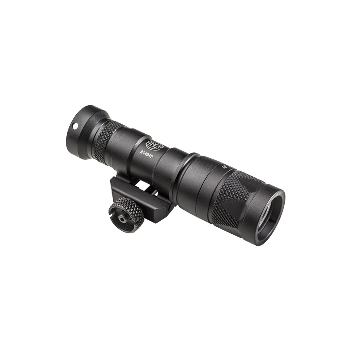 La lampe pour arme M300V Scout Light se fixe sur un rail Picatinny avec un système de fixation à molette. Elle permet de développer une lumière blanche brillante de 250 lumens ou une lumière en Infrarouge de 100 mW pour une utilisation avec un dispositif de vision nocturne sans avoir besoin de filtres infrarouges ou des lampes de rechange supplémentaires. Elle est livrée avec le montage M75 et un culot Z68 avec bouton poussoir. Il suffit de tourner la bague de sélection autobloquante pour basculer entre la lumière blanche et l'éclairage IR.