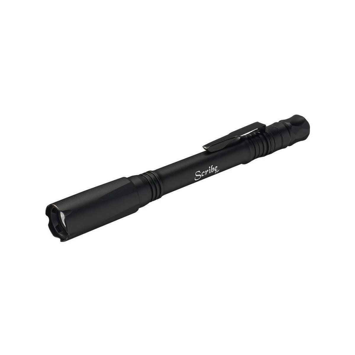 Petite lampe tactique de 350 et 15 lumens d'une longueur inférieure à 15 cm et qui pèse 62 g, ce qui la rend facile à transporter dans une chemise ou dans une poche de pantalon. La lampe Scribe fait partie de la gamme EDC (Every Day Carry) avec son format stylo, elle est robuste et sa lumière est intense. Elle est fournie avec une batterie rechargeable par clé USB sur n'importe quel ordinateur ou allume cigare. Elle peut de plus être alimenté par 2 piles AAA ASP au Lithium (LR3). La Scribe DF délivre une lumière de 350 lumens avec une autonomie continue d'environ 1h. Le mode discret offre une lumière de 15 Lu. Son corps est en aluminium aéronautique 6061 anodisé noir mat et elle dispose d'un clip de poche amovible.