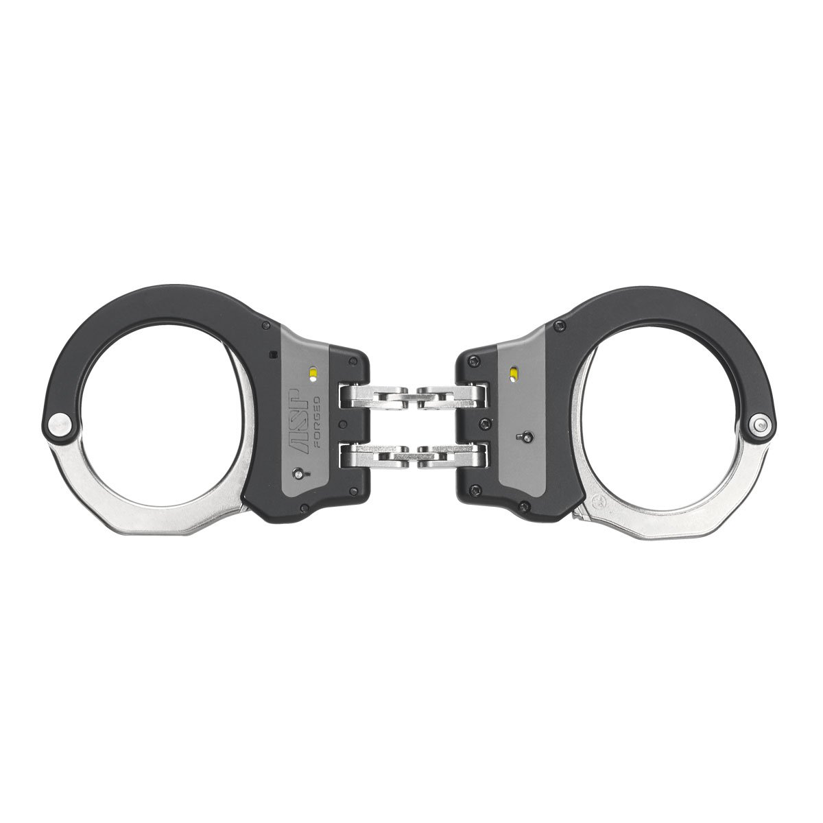 Menottes Ultra articulées en acier avec une seule sécurité (jaune), elles permettent plusieurs variations de technique de menottage et peuvent être utilisées très facilement à une main. cette version Acier est plus rigide que les autres modèles de la marque ASP. L'articulation permet également d'appliquer des contrôles sur un sujet très facilement.