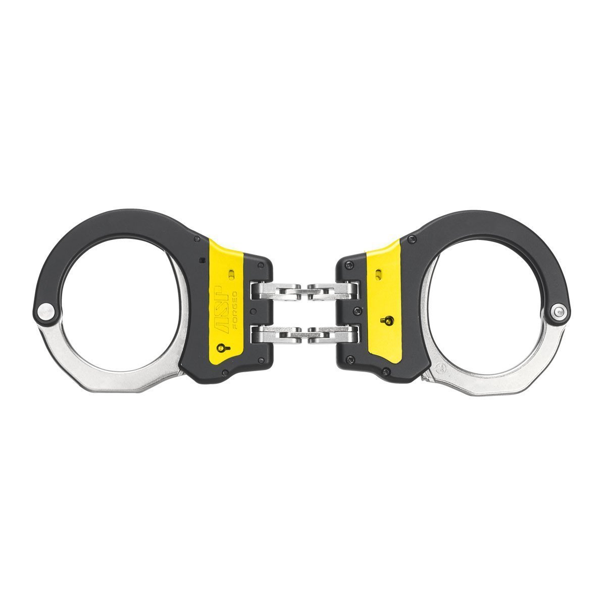 Menottes Ultra articulées en acier avec une seule sécurité (jaune), elles permettent plusieurs variations de technique de menottage et peuvent être utilisées très facilement à une main. cette version Acier est plus rigide que les autres modèles de la marque ASP. L'articulation permet également d'appliquer des contrôles sur un sujet très facilement.