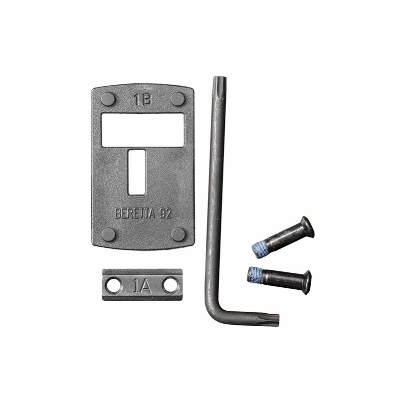 Montage pour adapter le DeltaPoint PRO sur un pistolet Beretta 92. Livré avec la visserie nécessaire pour le fixer la plaque sur le pistolet et fixer le DP Pro sur la plaque. En acier usiné et fabriqué aux Etats-Unis.