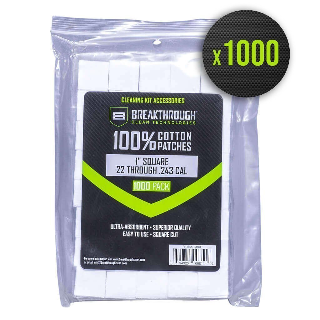 1000 patchs de nettoyage en coton calibrés pour du 22LR au .243 cal.