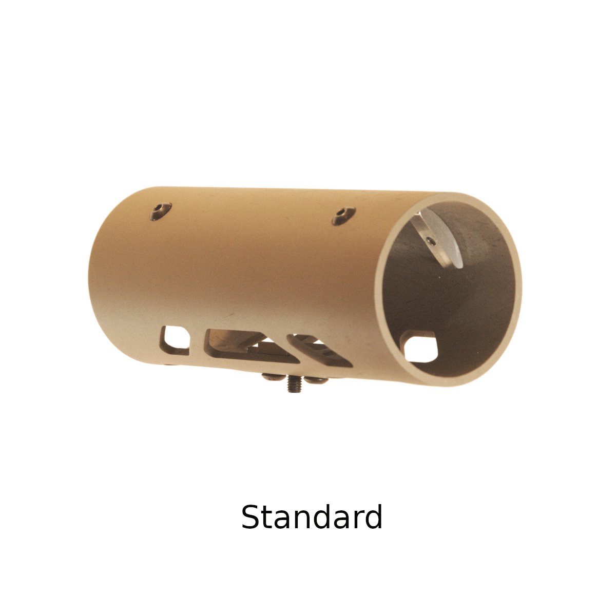 - Ventilation Standard : La conception de l'évent «standard» est optimisée pour offrir une réduction maximale du mirage tout en permettant un flux d'air depuis le dessous du réducteur, vers le haut et autour du corps du suppresseur pour favoriser un refroidissement naturel.