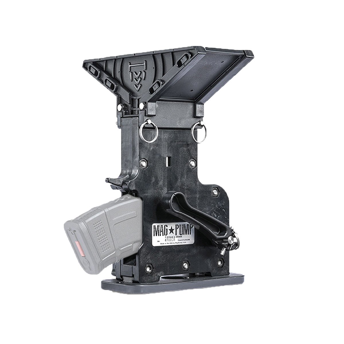 MagPump est un dispositif de chargement simple d’utilisation qui permet d'approvisionner rapidement les chargeurs d’armes à feu. La mise en oeuvre est simple : il suffit de vider les munitions en vrac dans la trémie, d'insérer le chargeur et d'actionner le levier. Le système MagPump réduit considérablement le temps nécessaire au chargement de vos chargeurs en munitions : vous graillez 30 cartouches en 30 secondes !