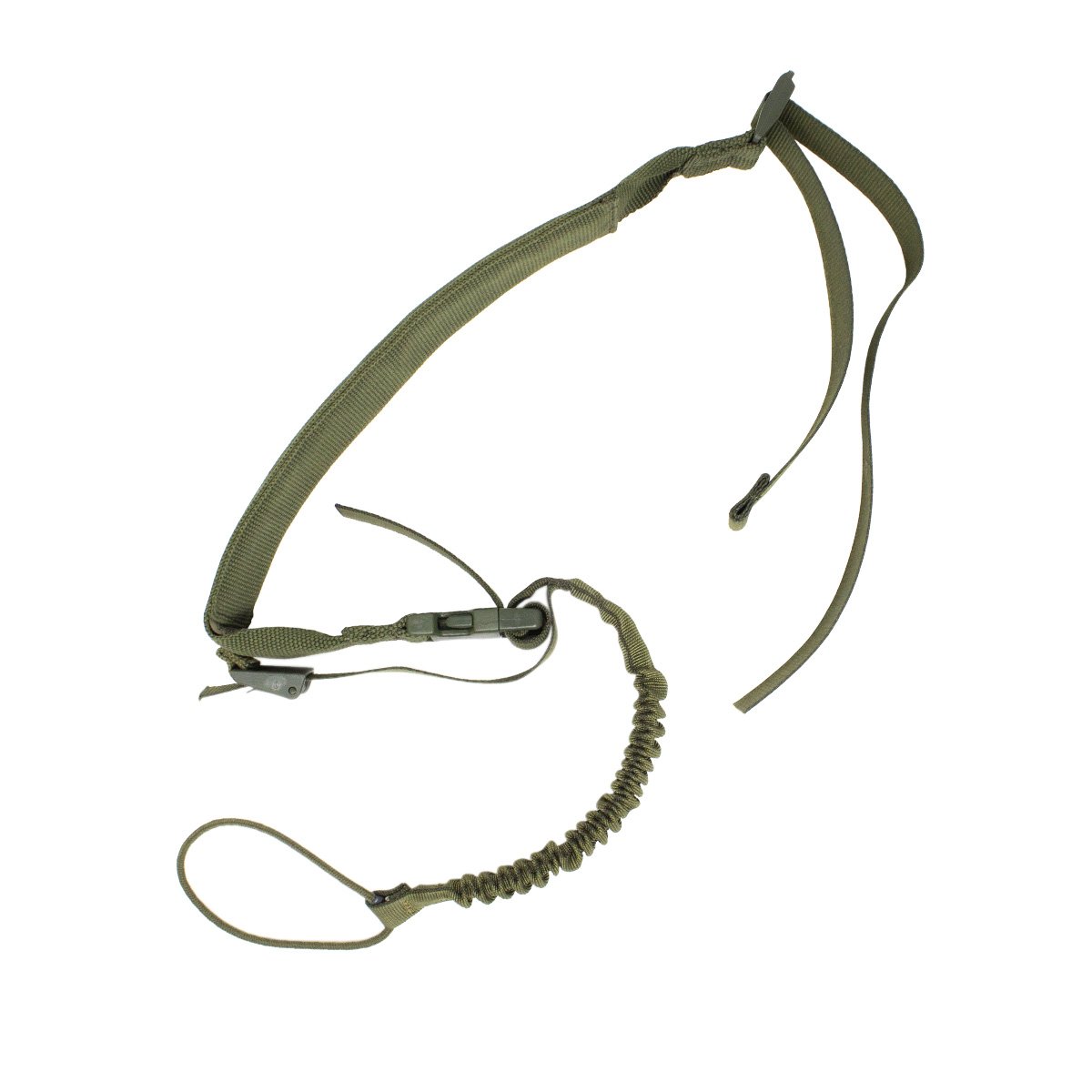 Sangle d'arme pour le tir de combat initialement conçue pour le FAMAS. A l'avant, le lacet en silice se monte sur le fût du canon en tête d'alouette et fixation à l'arrière de la sangle dans le pontet de la crosse.