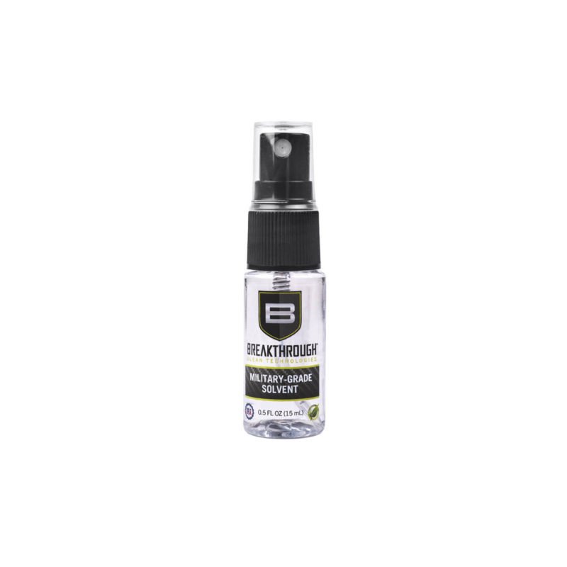 Solvant de qualité militaire en bouteille spray de 15 ml pour nettoyer l'armement. Le produit est inodore, non colorant, élimine totalement l’encrassement, et s'évapore complètement, ne laissant aucun résidu. Les produits de nettoyage Breakthrough® Clean sont à la pointe de la technologie et permettent un nettoyage plus rapide et plus sûr de vos armes à feu. Il élimine plus de contaminants que la plupart des produits sur le marché, offrant des performances optimales, la sécurité et une facilité d'utilisation.